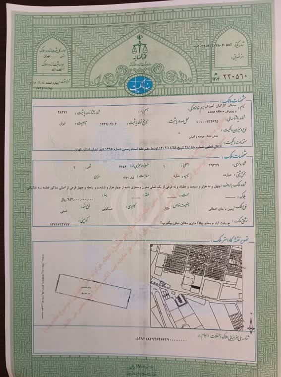 با تلاش هیئت مدیره جهت تامین منابع مالی و پرداخت مانده ثمن خرید زمین به مالک در تاریخ 1404/11/26 سند مالکیت به نام تعاونی مسکن انتقال پیدا کرد . با توجه به تثبیت مالکیت بر روی کل پروژه و همکاری اعضا امیدواریم مراحل دریافت پروانه با سرعت بیشتری ادامه پدا کند .